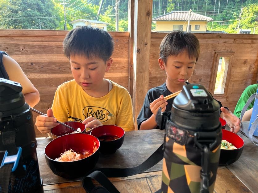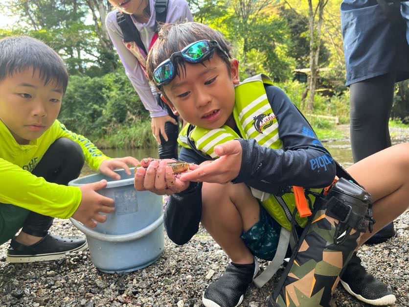 ヒキガエル、ナマズ、カワムツ、ナナフシ、ウスバカゲロウ、2日間だけでもたくさんの生き物に出会った。普段はあまりなじみのない生き物からキャーキャー逃げたり、ワーワー追いかけたりしながら(笑)、豊かな時間を過ごしていました。